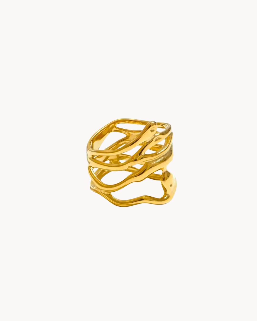 This waterproof ring flows with a natural rhythm — sculpted to feel like sea and sun wrapped around your finger. Minimal, fluid, and made for Mediterranean daydreamers.